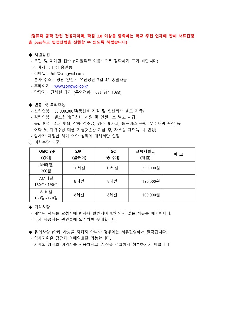 ※ 이메일 제목 : [○○○(회사명) 추천채용 지원] 000000000(학번) □□□(성명)