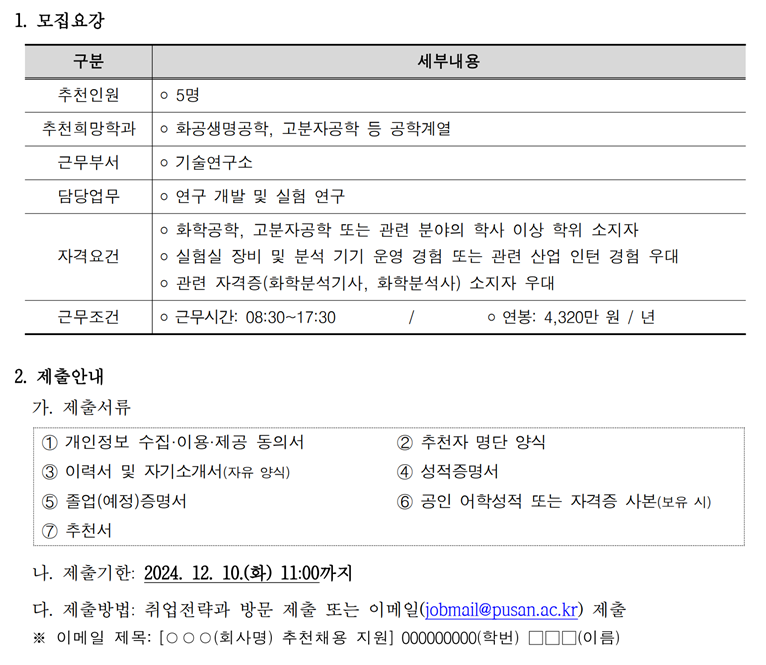 ※ 이메일 제출 시 주소 : jobmail@pusan.ac.kr