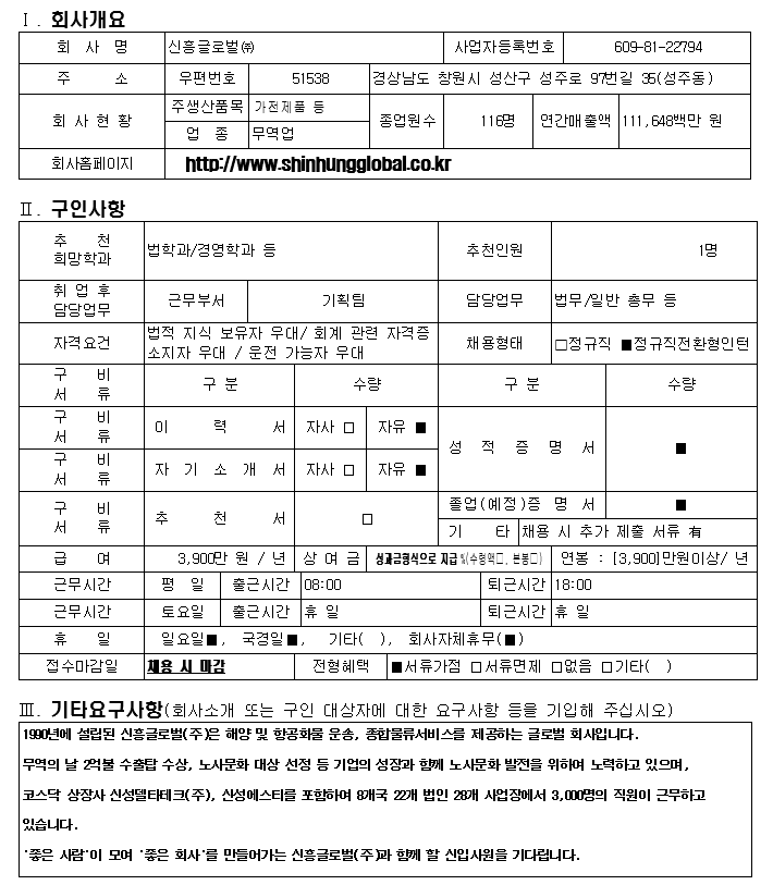 신흥글로벌㈜ 추천채용 안내_채용 시 마감
