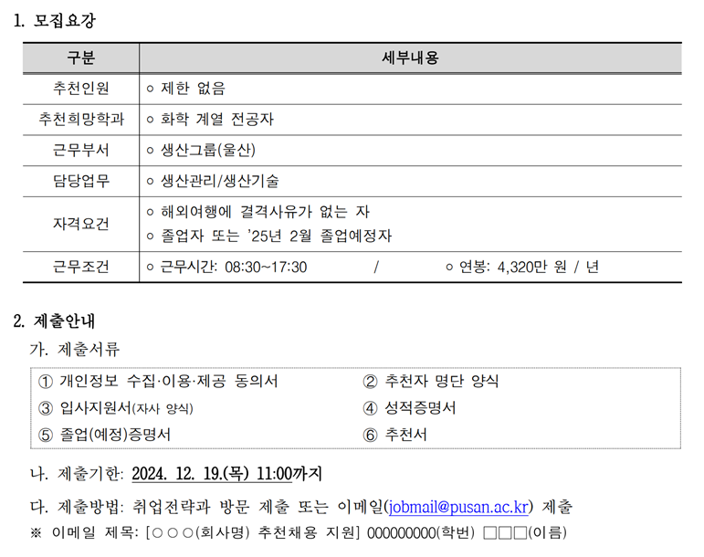※ 이메일 제출 시 주소 : jobmail@pusan.ac.kr