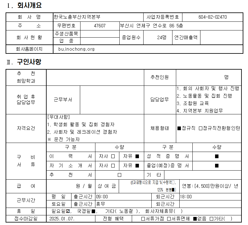 ※ 「추천채용 의뢰서」 양식은 한글 또는 워드 파일로 보내주십시오.