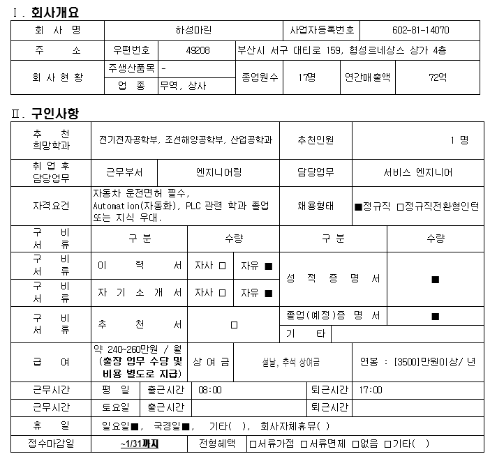 2. 1/31(금) 11:00까지 취업전략과 방문 또는 이메일(jobmail@pusan.ac.kr) 제출