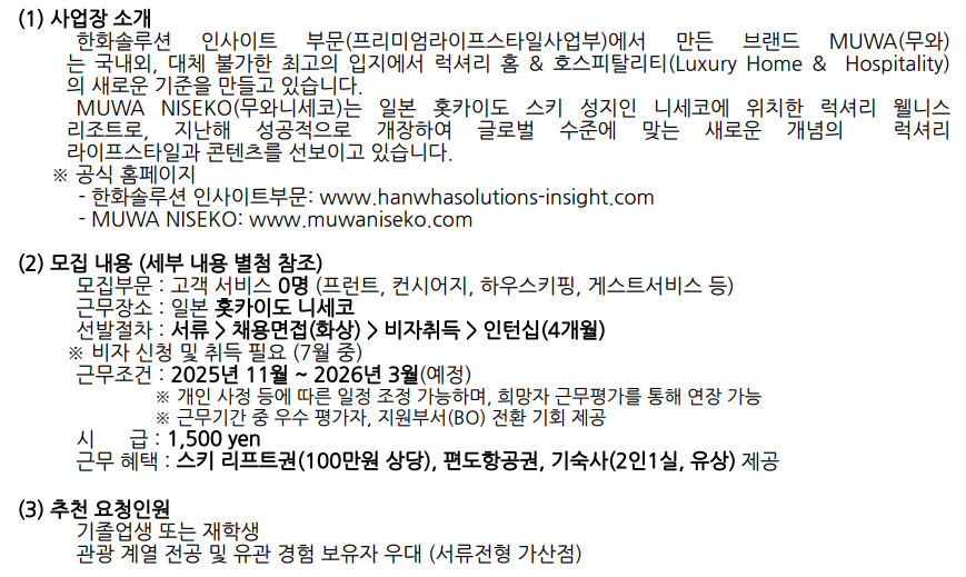 [한화솔루션] MUWA NISEKO 인턴사원 채용 안내