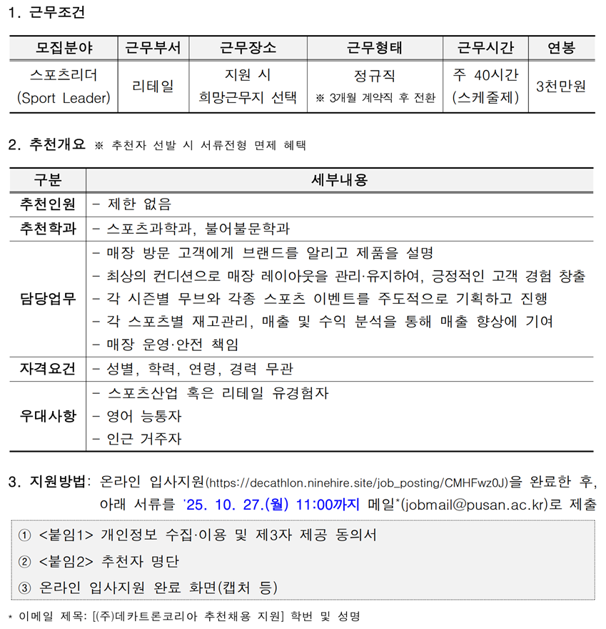 (주)데카트론코리아 추천채용 안내