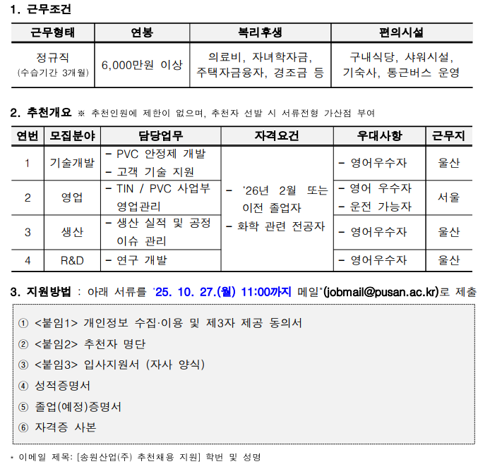 - 추천채용 공고는 반드시 아래 「추천채용 의뢰서」 양식을 포함하여 취업전략과 메일로 보내주시기 바랍니다.