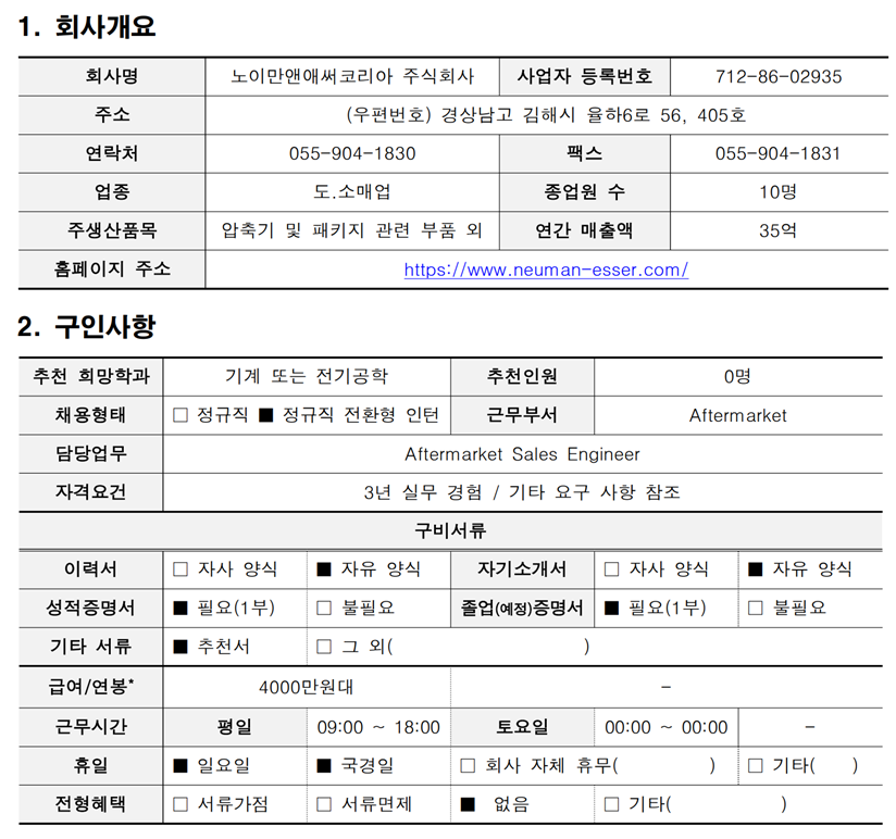 * 이메일 제목 : [노이만앤애써코리아(주) 추천채용 지원] 학번 및 성명