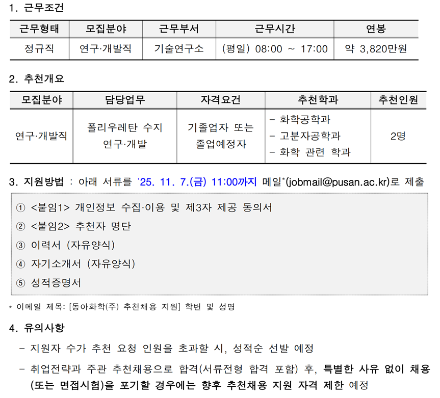 - 추천채용 공고는 반드시 아래 「추천채용 의뢰서」 양식을 포함하여 취업전략과 메일로 보내주시기 바랍니다.