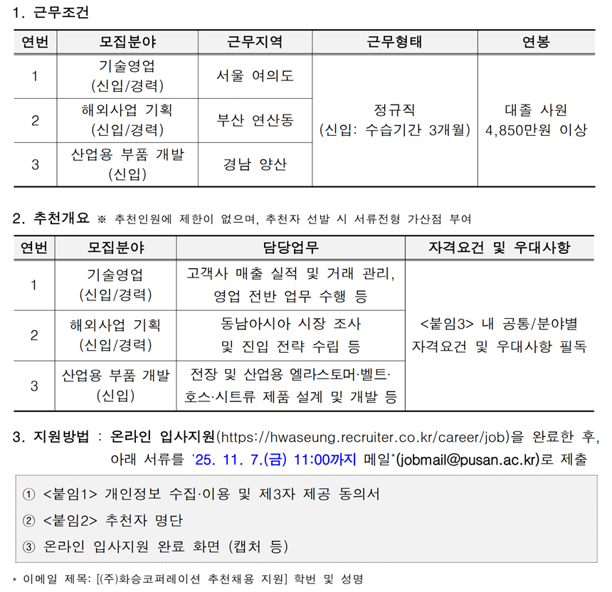 [(주)화승코퍼레이션] 2026년 상반기 신입/경력 추천채용 안내