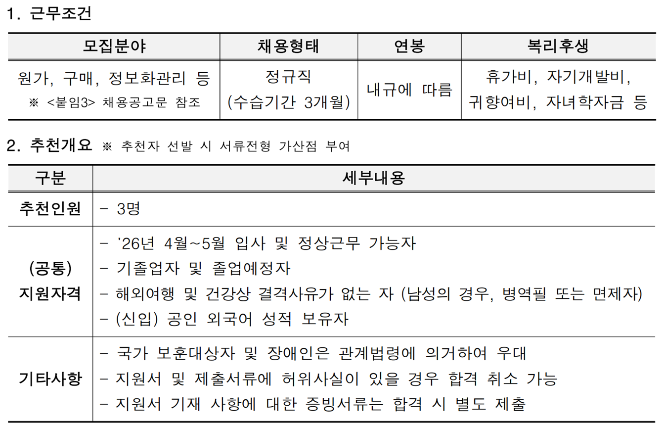 ※ 「추천채용 의뢰서」 양식은 한글 또는 워드 파일로 보내주십시오.