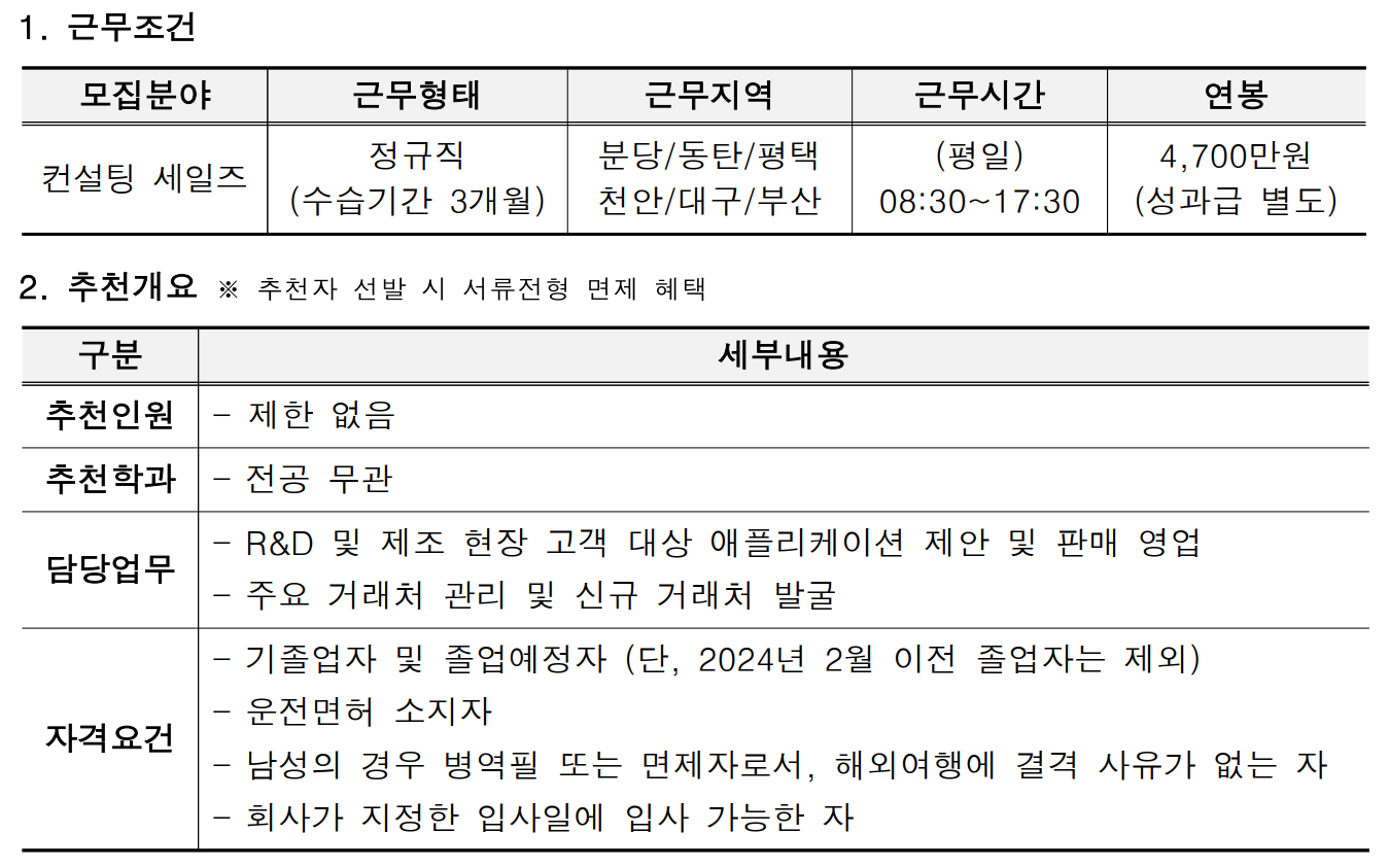 ※ 「추천채용 의뢰서」 양식은 한글 또는 워드 파일로 보내주십시오.