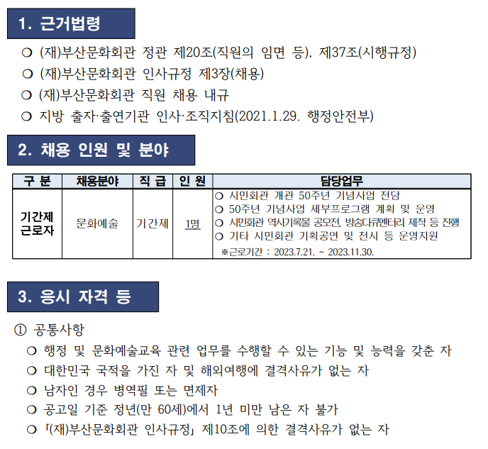 (재)부산문화회관 2023년 제5차 직원 채용 공고