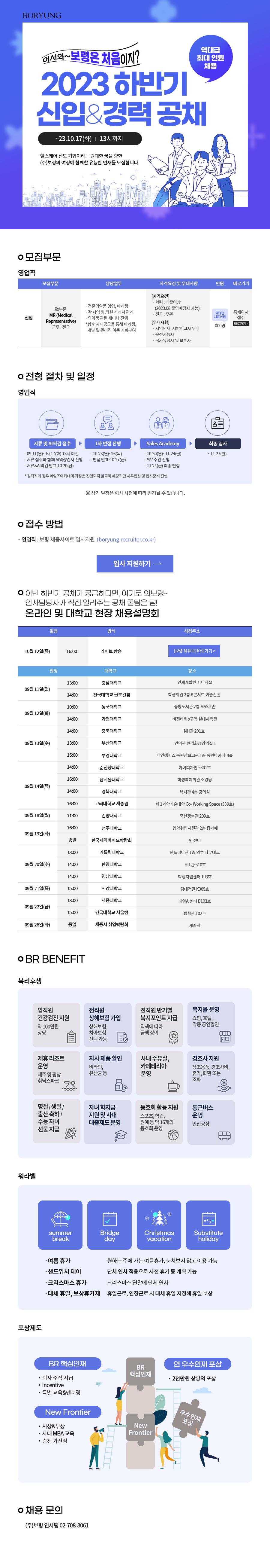 [보령] 2023년 하반기 신입&경력 공채(~10/17)
