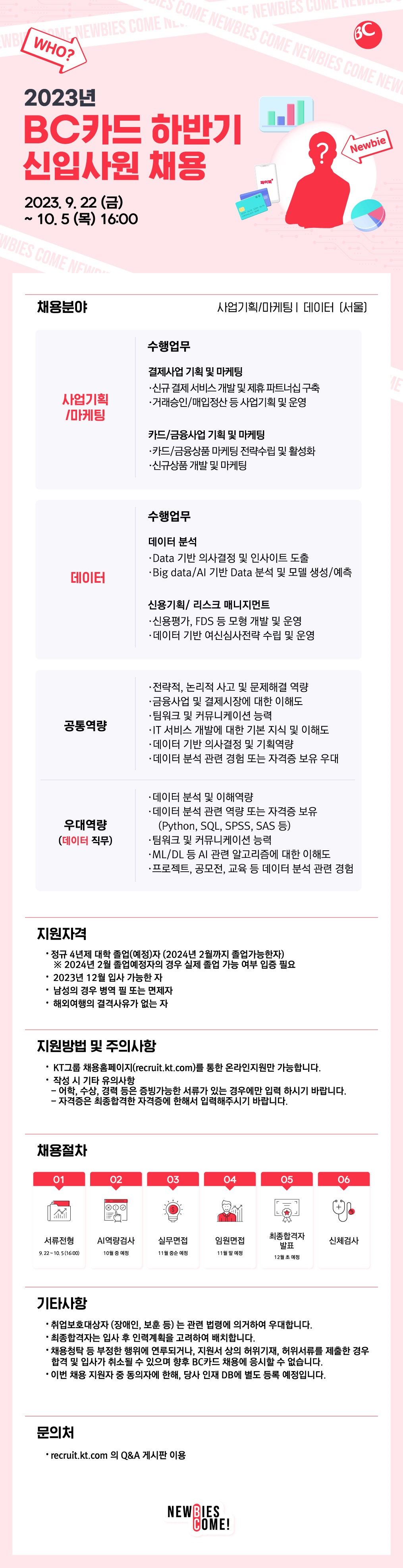 2023년 하반기 BC카드 신입사원 채용 안내