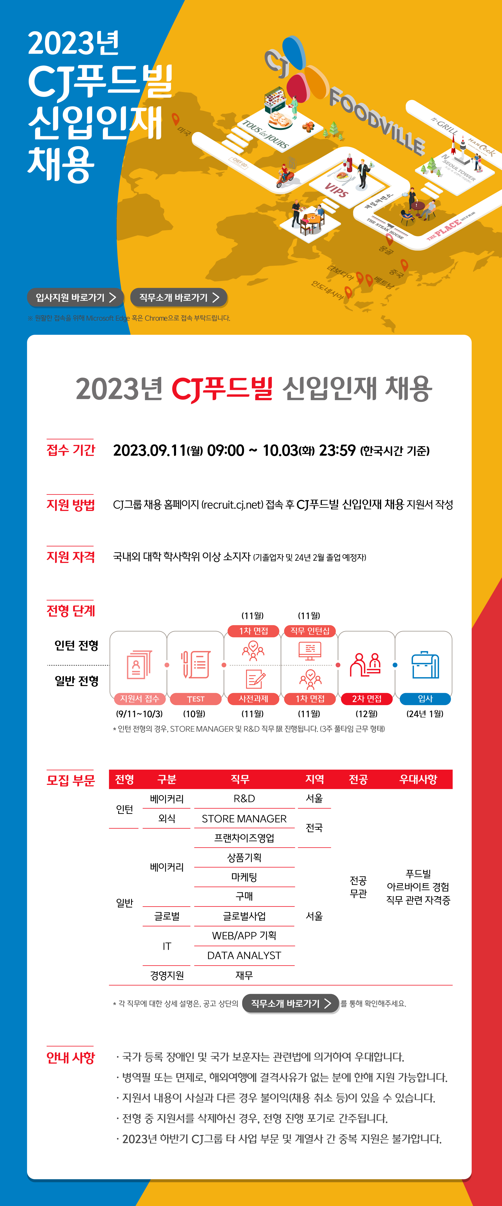 23년(하) CJ푸드빌 신입인재 채용 (~10/3, 23:59)