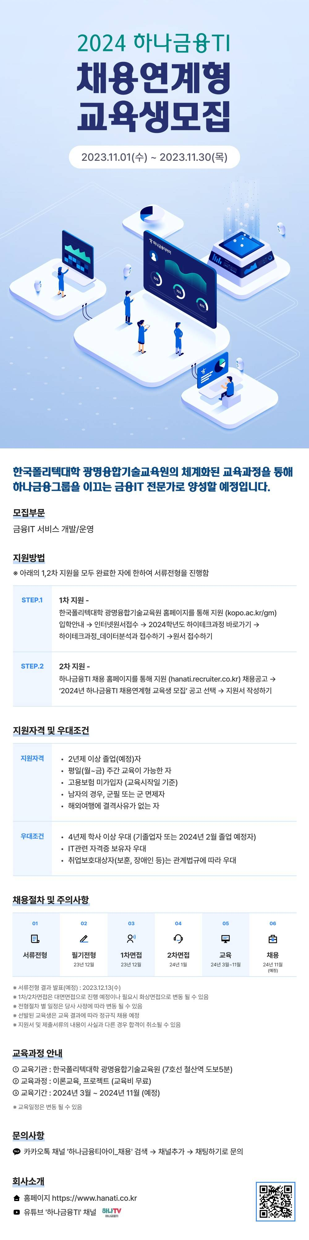 [하나금융TI] 2024년 채용연계형 교육생 모집 공고