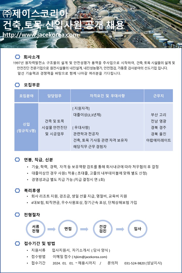 ㈜ 제이스코리아 건축 건축,토목 신입 사원 공개 채용
