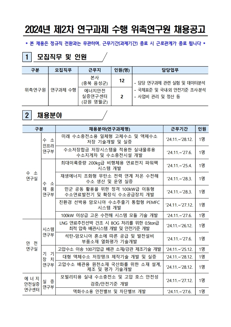 2024년 제2차 연구과제 수행 위촉연구원 채용공고