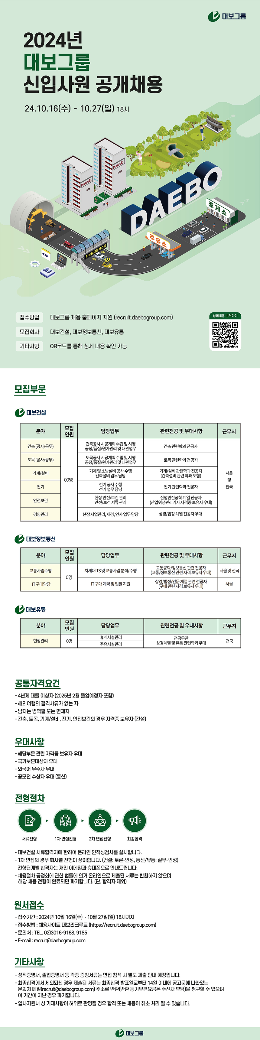 접수방법: 대보그룹 채용 홈페이지 지원(recruit.daebogroup.com)