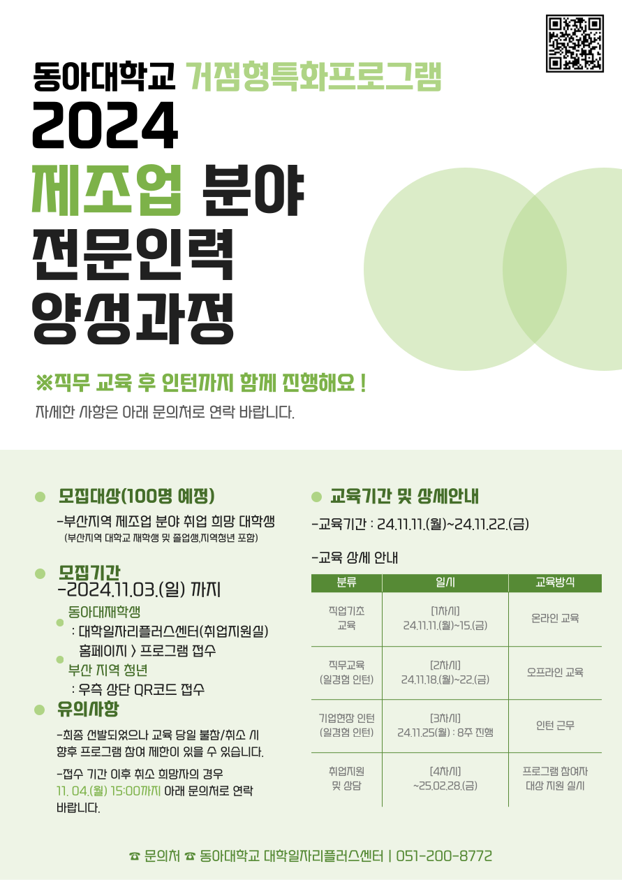 [동아대학교 거점형 특화] 2024 제조업 분야 전문인력 양성과정