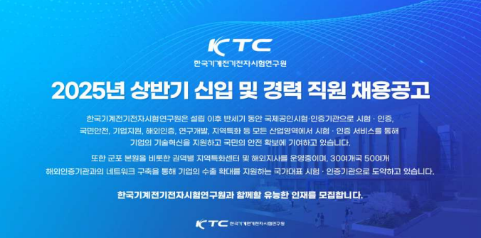 2025년 한국기계전기전자시험연구원 신입 및 경력 직원 채용 공고