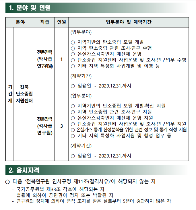 모집부문 및 자격요건
