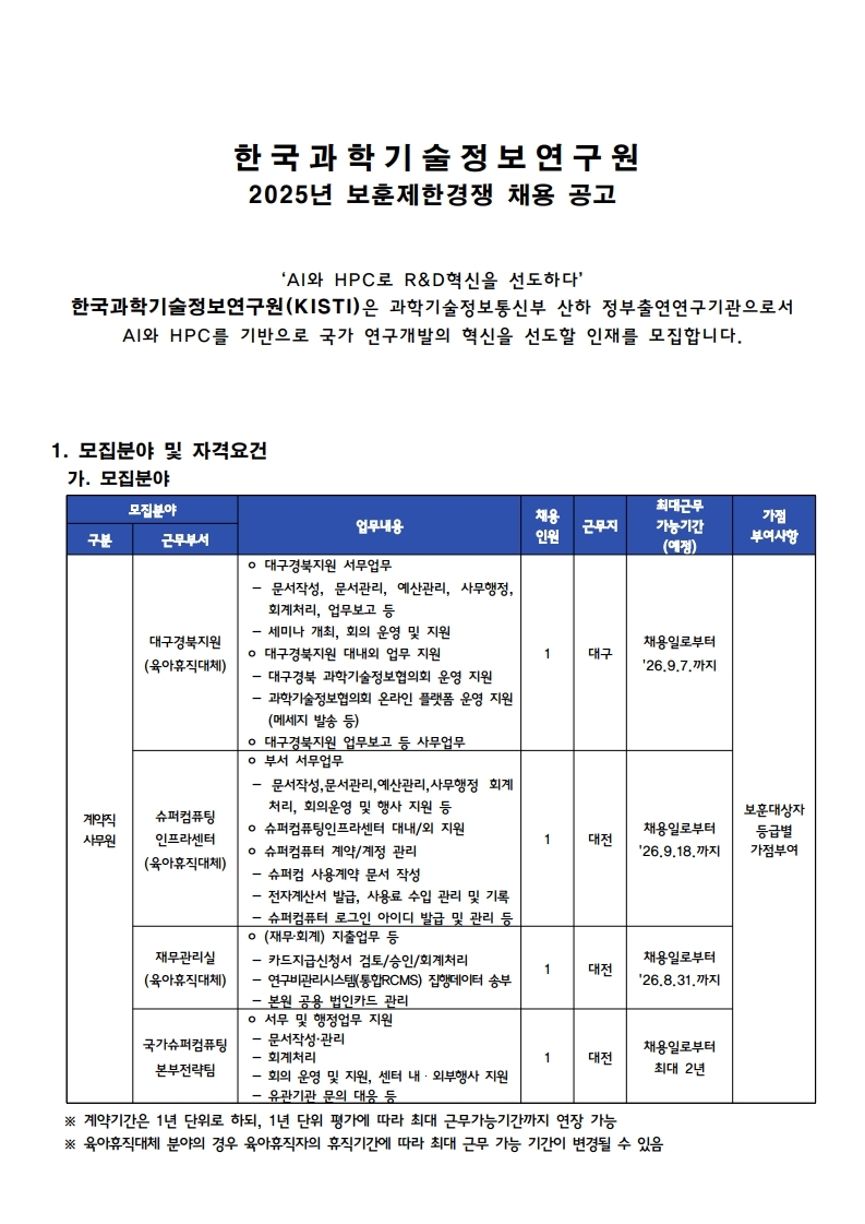 2025년 계약직 사무원 보훈제한경쟁