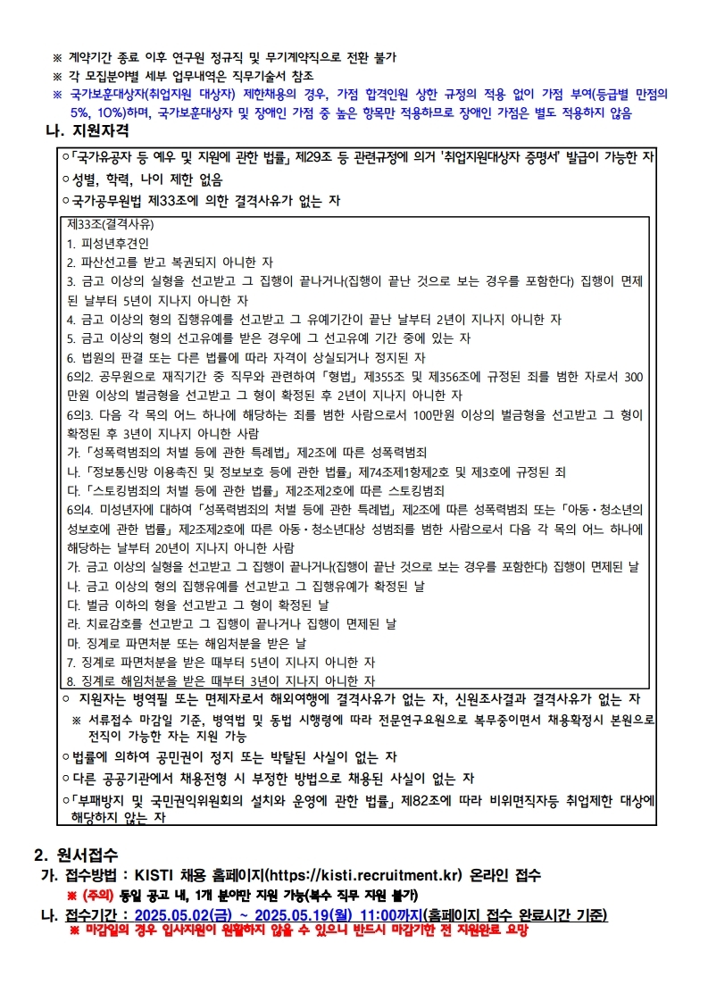 모집부문 및 자격요건