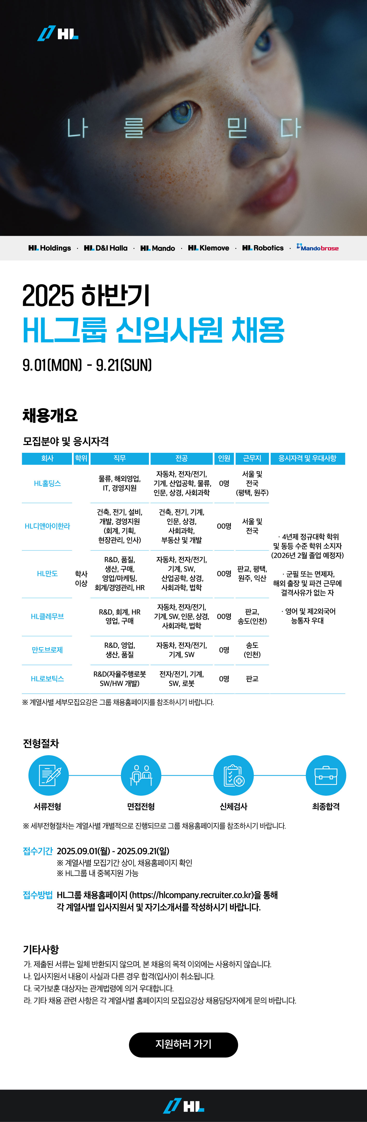 ▪ 접수방법 : HL그룹 채용홈페이지(https://hlgroup-recruit.com/)를 통해