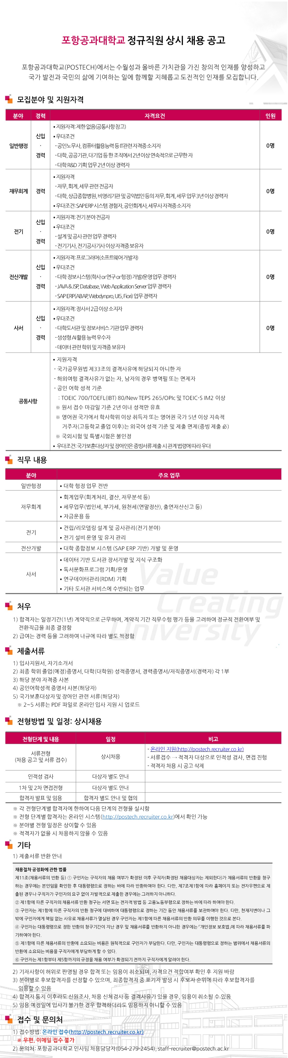 포항공과대학교 정규직원 상시 채용