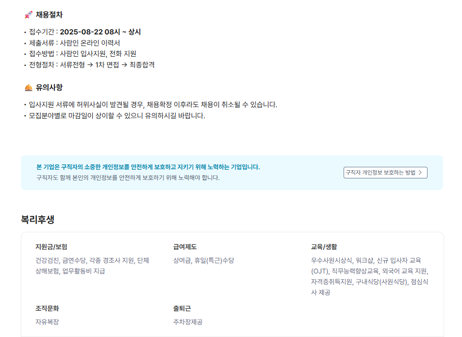 기업에서 등록한 채용 공고문을 공지하고 있습니다. 공고문을 참고하여 회사에 지원하시면 됩니다.