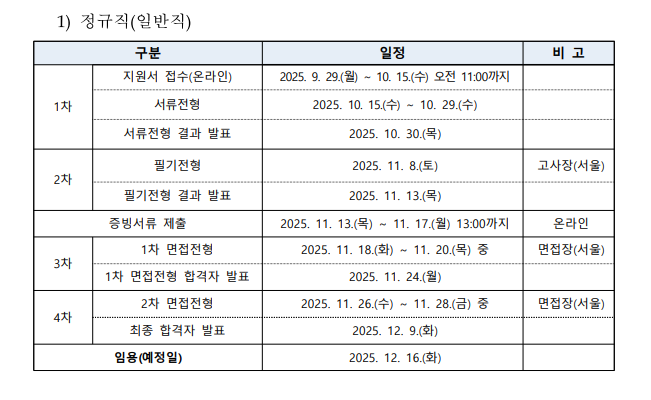 직무 별 전형 일정이 상이하므로 자세한 사항은 홈페이지와 첨부파일 참고 바랍니다.