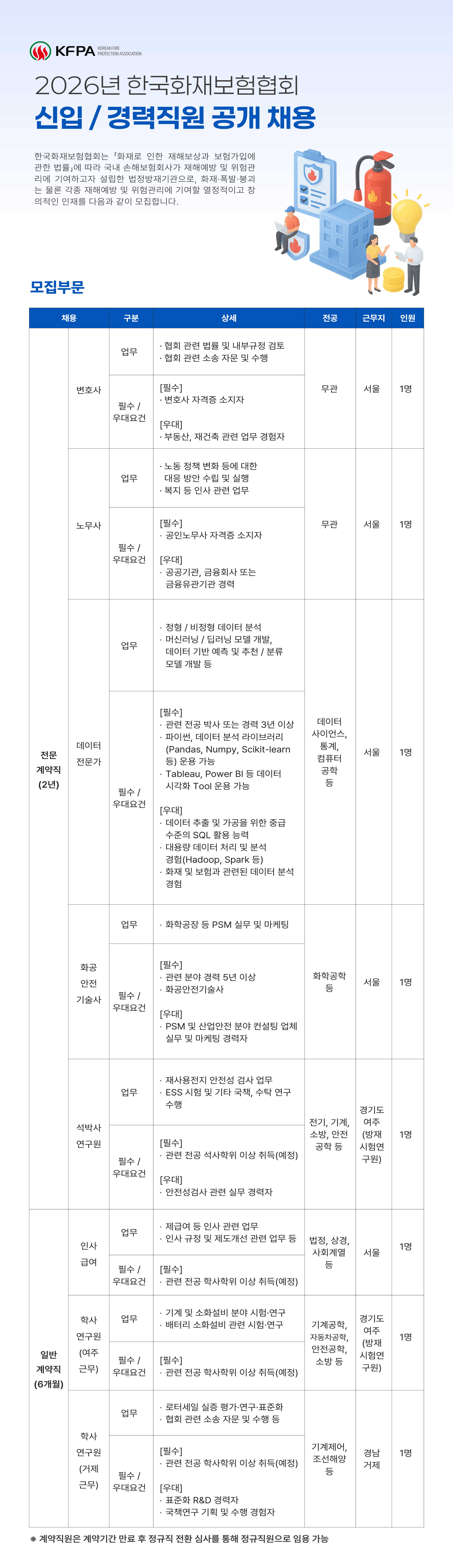 한국화재보험협회 신입/경력 계약직 채용(정규직 전환 가능)
