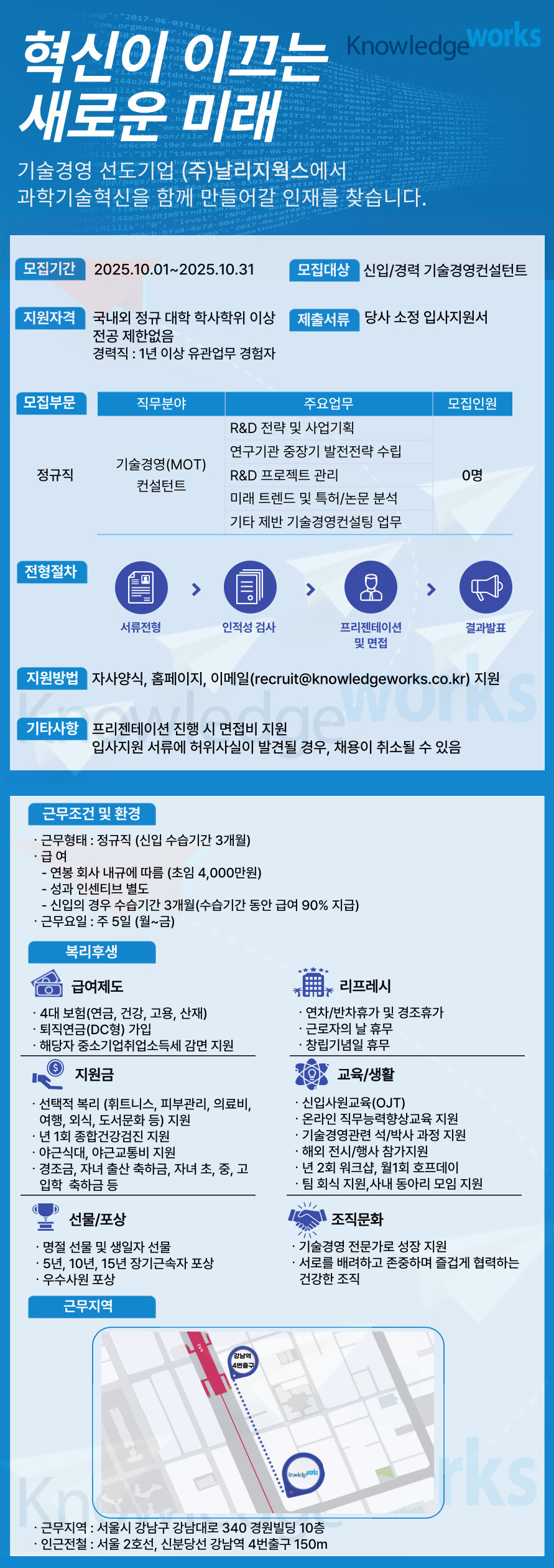 (주)날리지웍스 기술경영(MOT)컨설턴트 채용