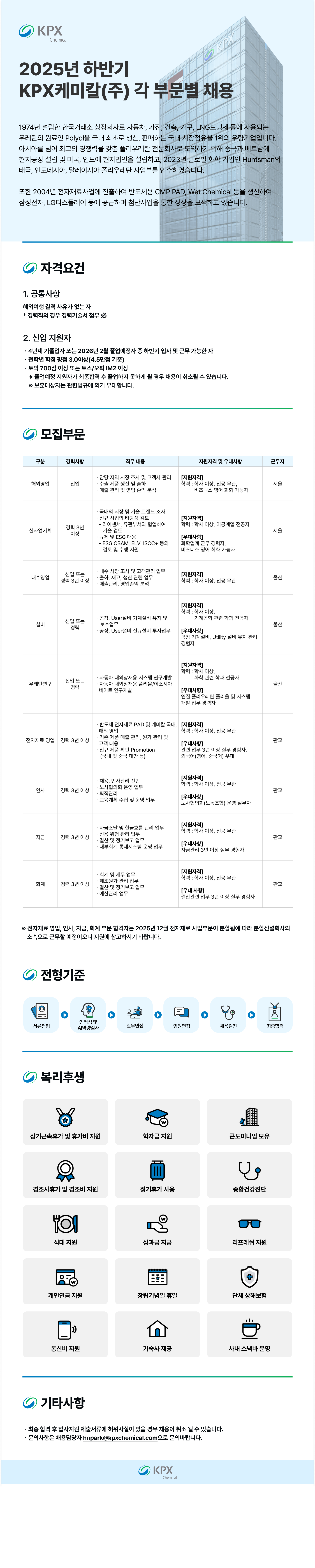KPX케미칼 2025년 하반기 각 부문별 채용