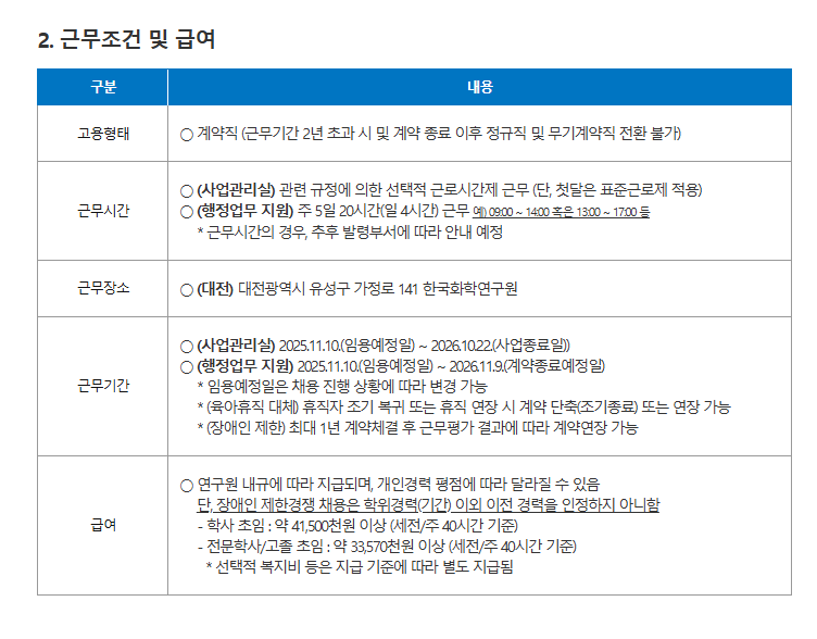 한국화학연구원 계약직(장애인 제한경쟁 포함) 채용공고(~10.27)