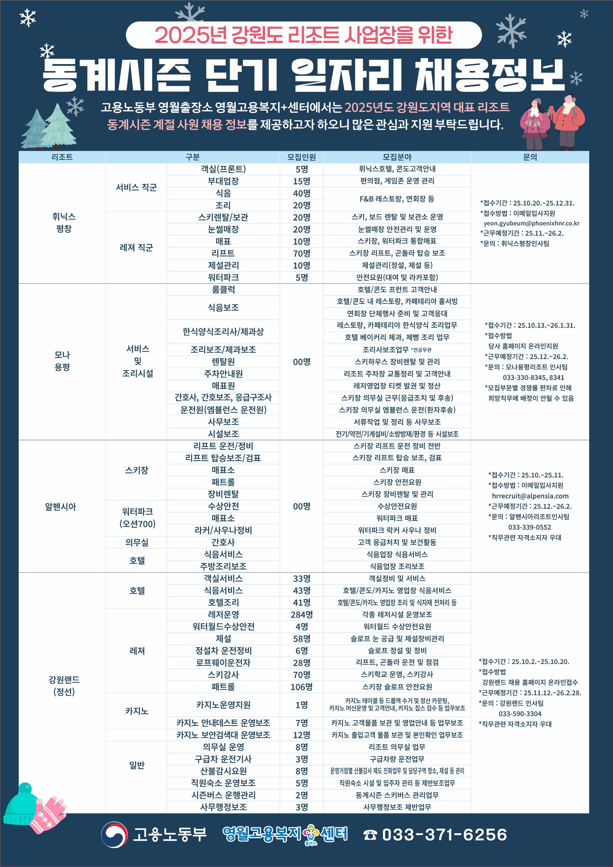 2025년 강원도 리조트 사업장을 위한 동계시즌 단기 일자리 채용정보