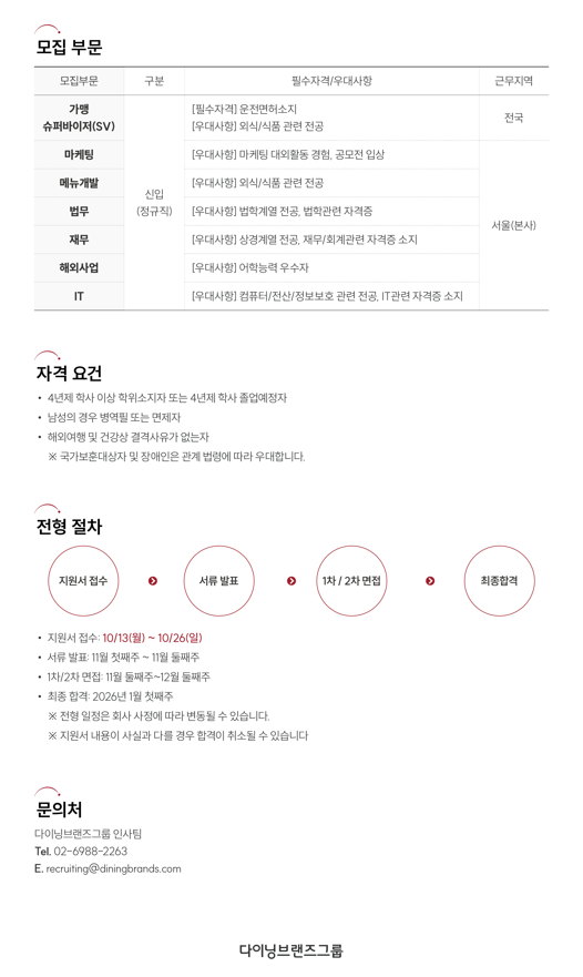 공고 URL 바로가기 : https://diningbrands.career.greetinghr.com/o/176880