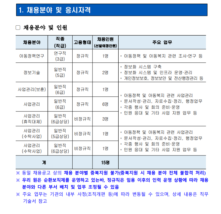 회사명 아동권리보장원 기업형태 공기업·공공기관·공사 모집부문 아동정책연구/정보기술/사업관리 근무지 서울 전지역 기업홈페이지 https://www.ncrc.or.kr 공고URL https://job.career.co.kr/recruit/view/21479438     * 자세한 내용은 첨부파일 참고 바랍니다.