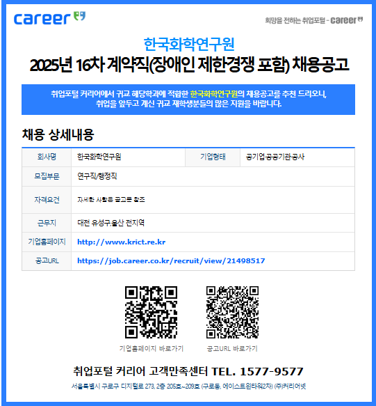 2025년 16차 계약직(장애인 제한경쟁 포함) 채용공고
