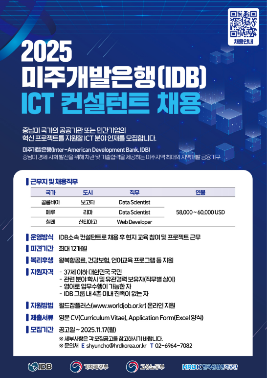 2025 미주개발은행(IDB) ICT 컨설턴트 채용