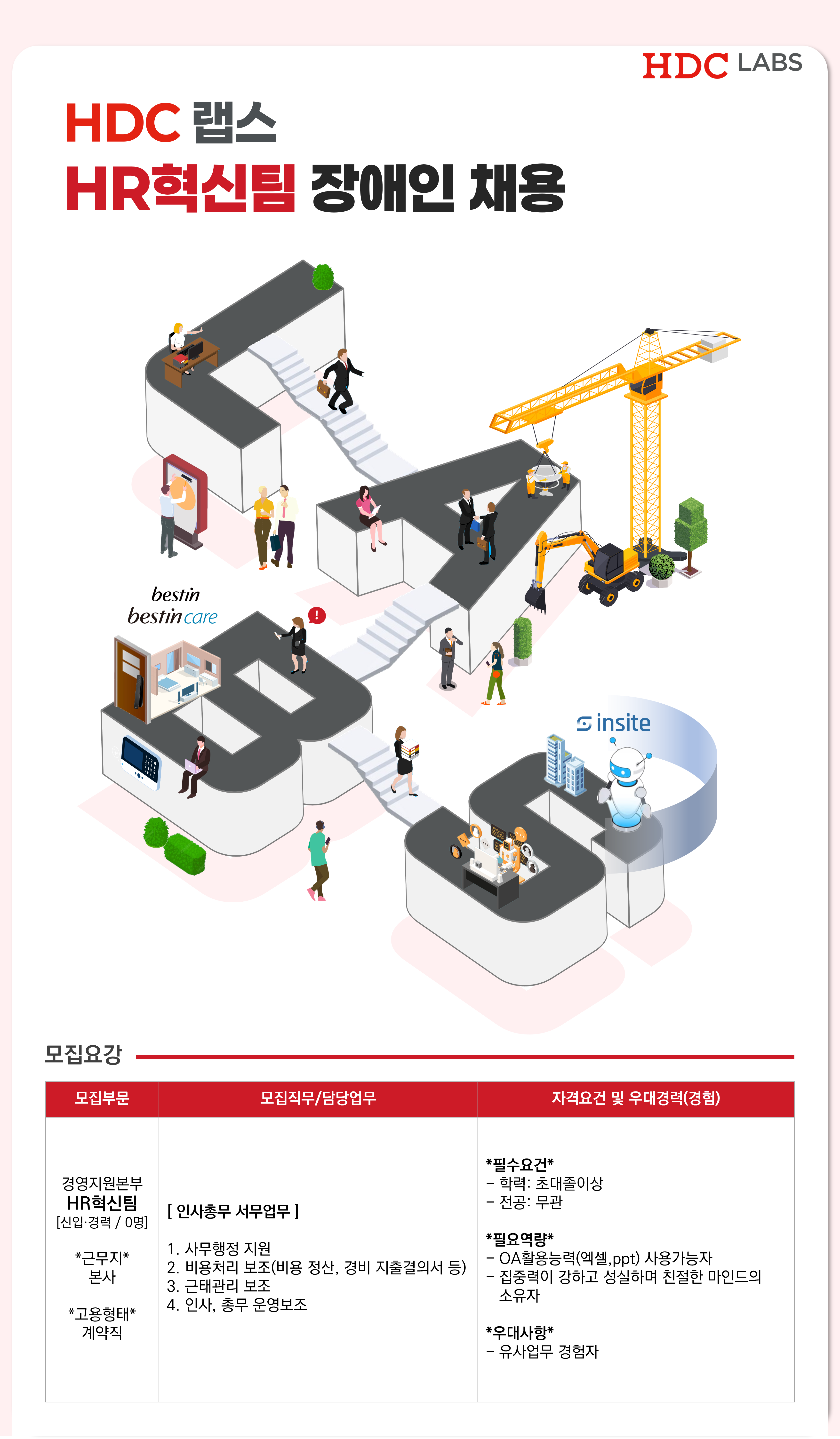 🔹 지원방법 : 자사 채용홈페이지 접속하여 지원**(바로가기 링크: HDC랩스 채용 | [HDC랩스/본사] HR혁신팀 인사총무 서무직무 장애인 채용)