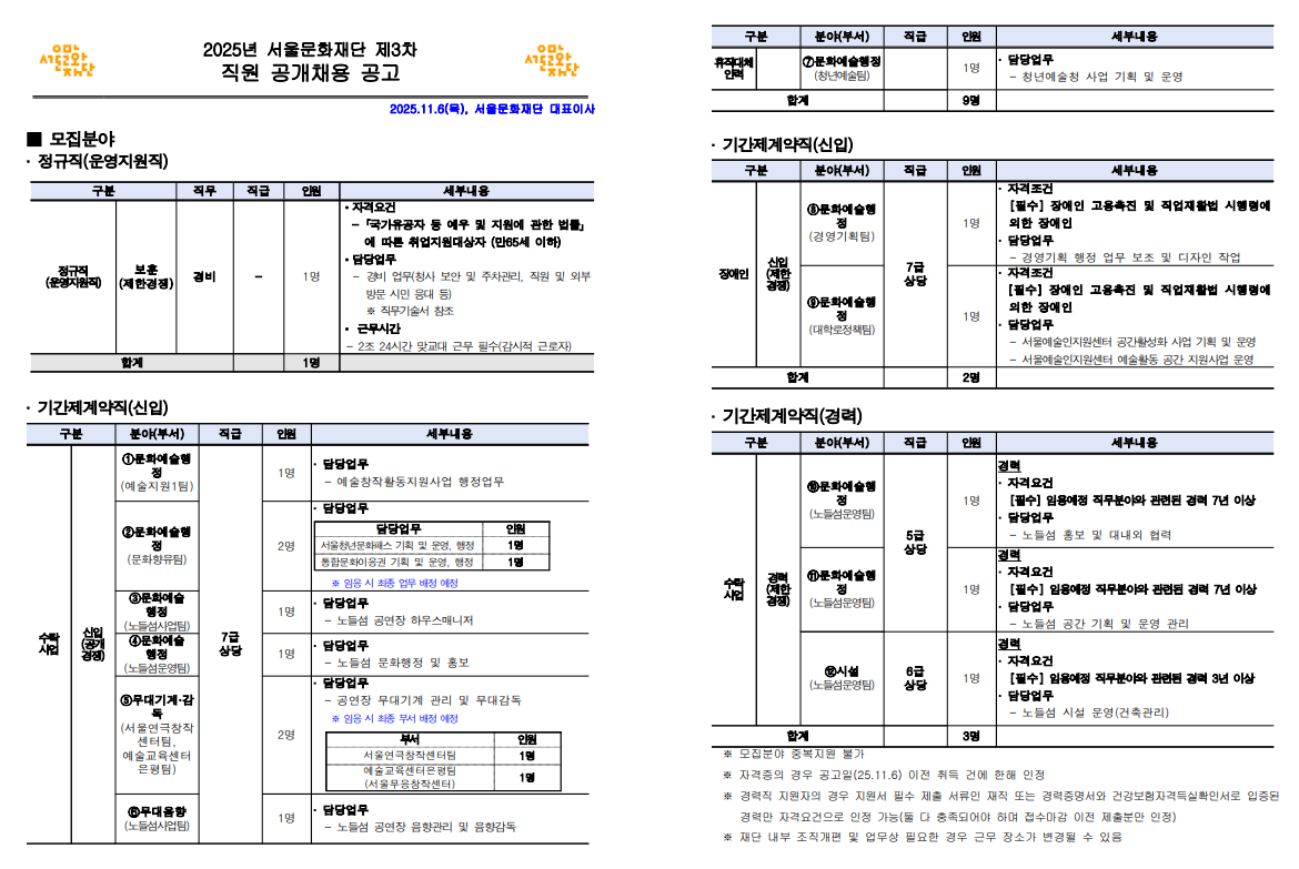 2025년 서울문화재단 제3차 직원 공개채용 공고(~11/27)