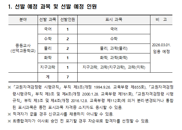 2026학년도 학교법인 세그루학원 선덕고등학교 신규교사 임용후보자 선정경쟁시험 시행계획 공고