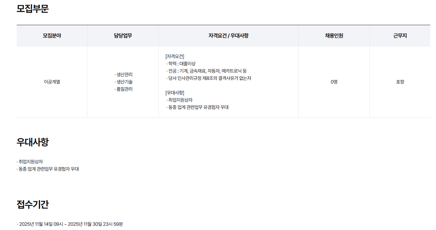 *모집분야 : 이공계열(기계, 재료금속, 자동차, 메카트로닉 등)