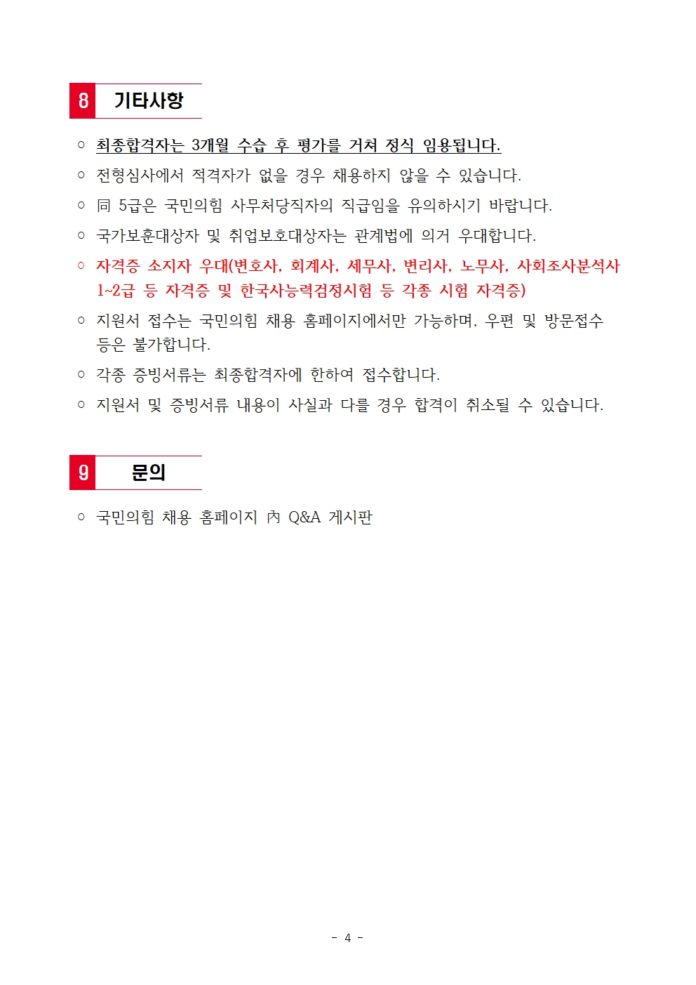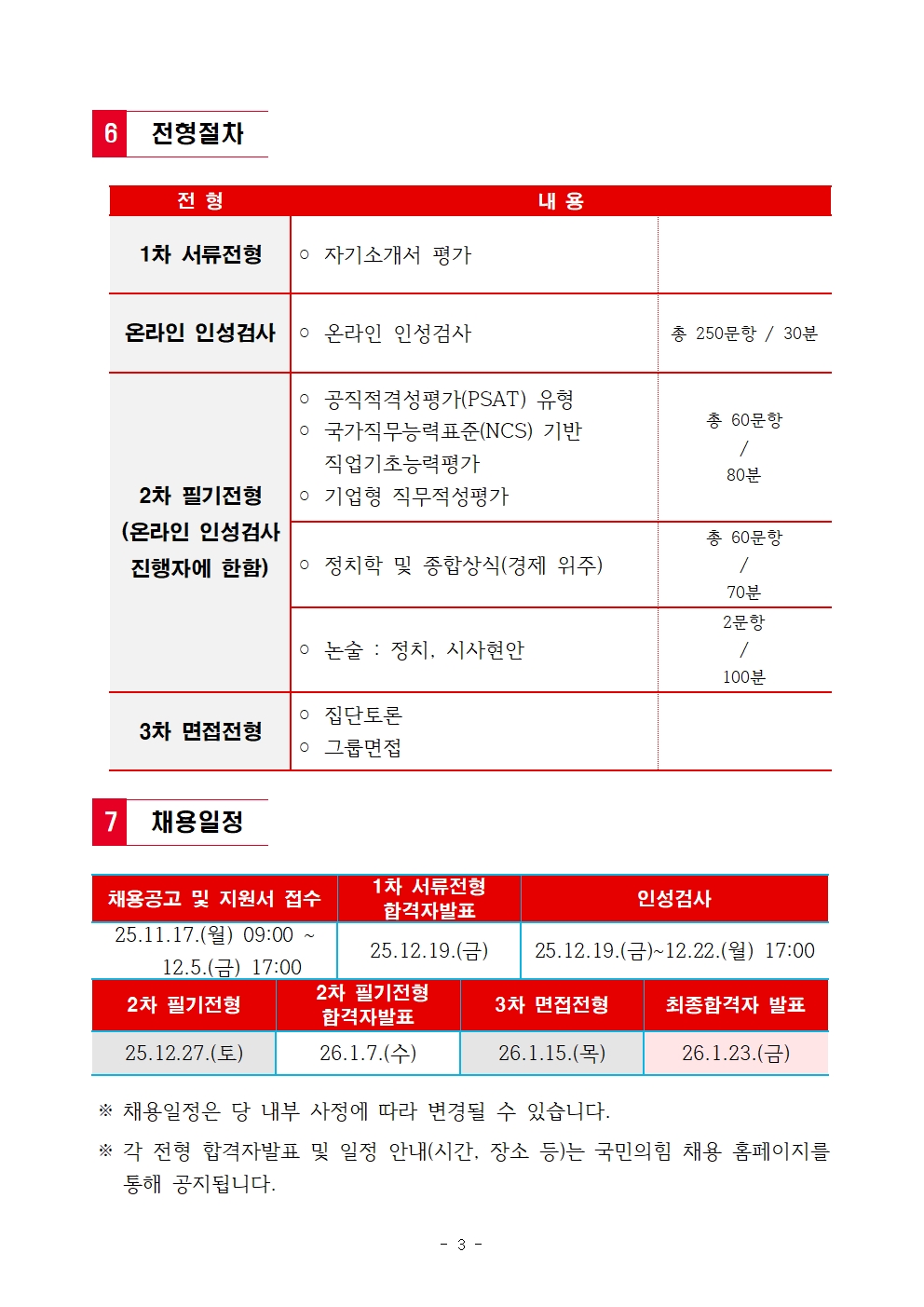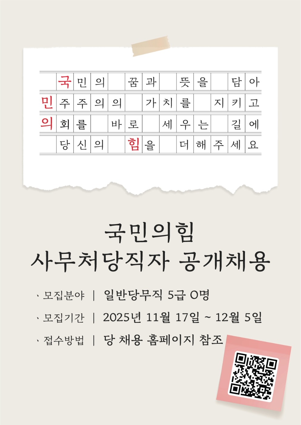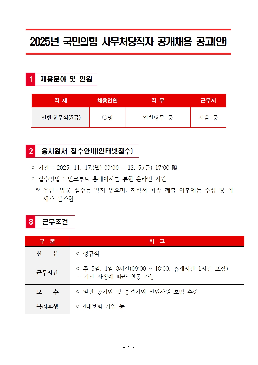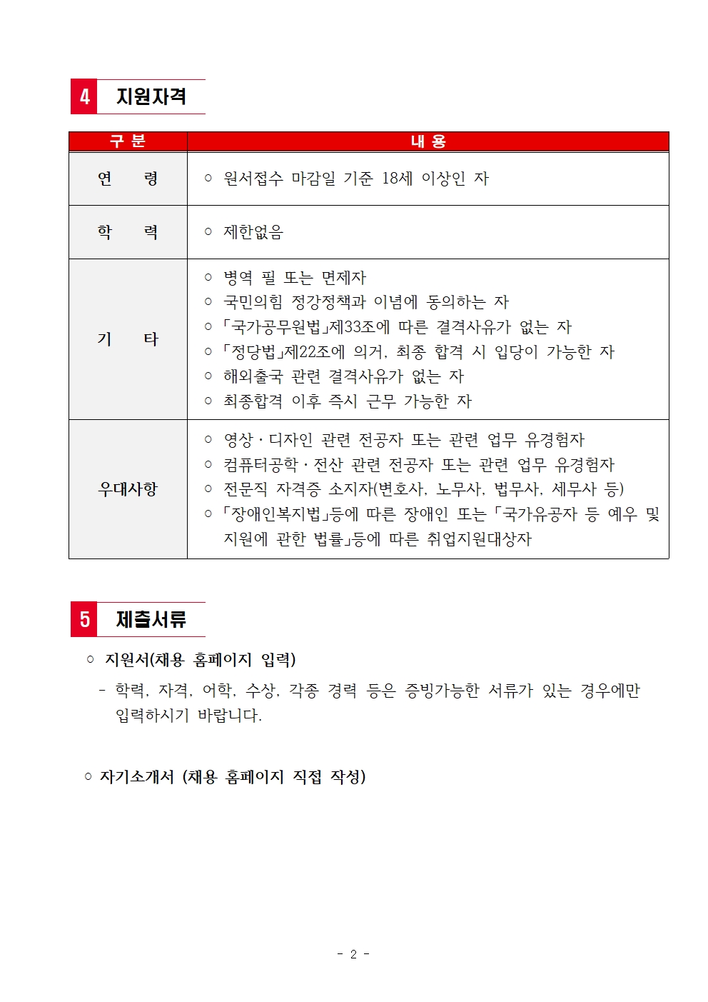2025년 국민의힘 사무처당직자 공개채용 공고