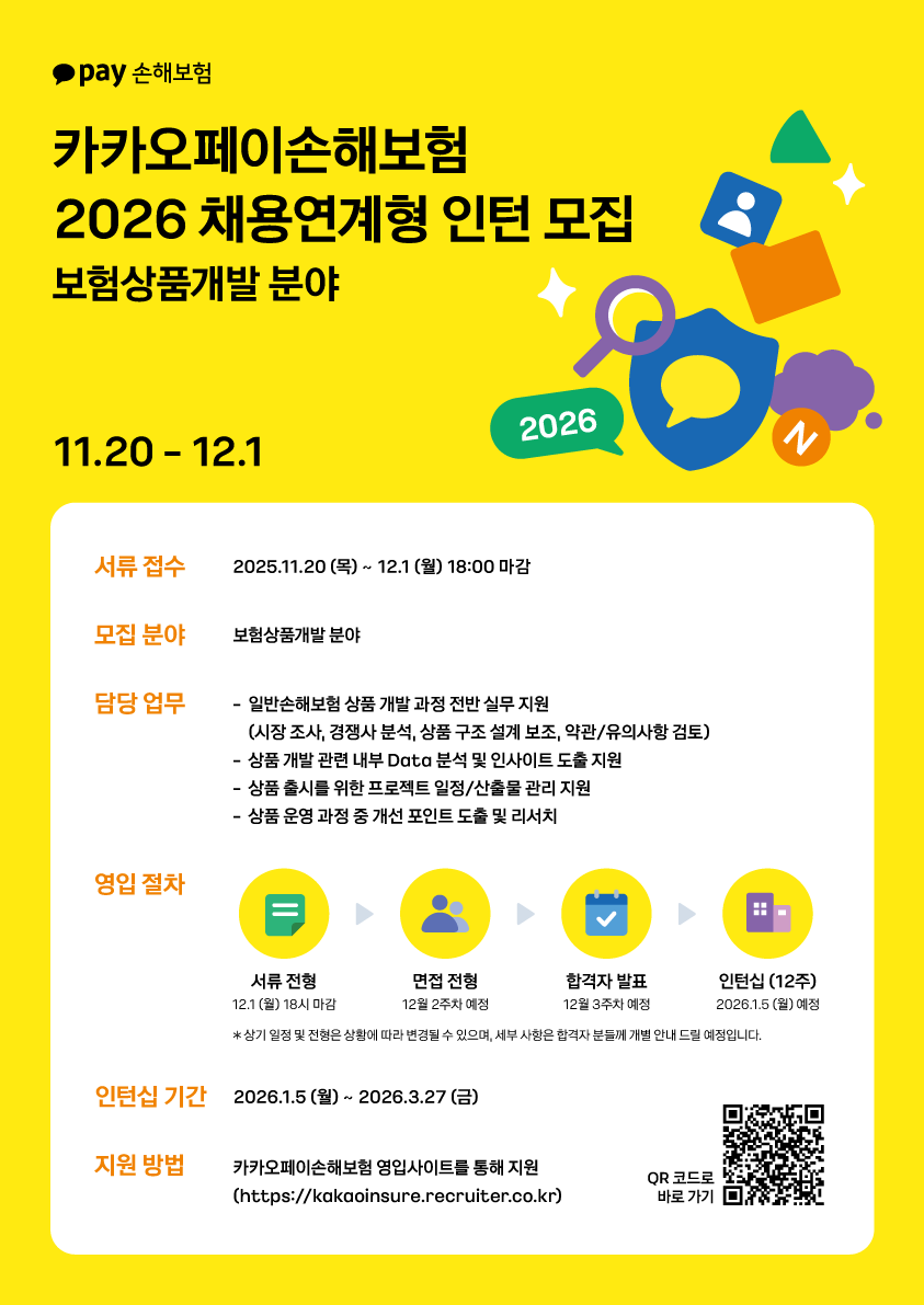 카카오페이손해보험 2026 채용연계형 인턴 모집