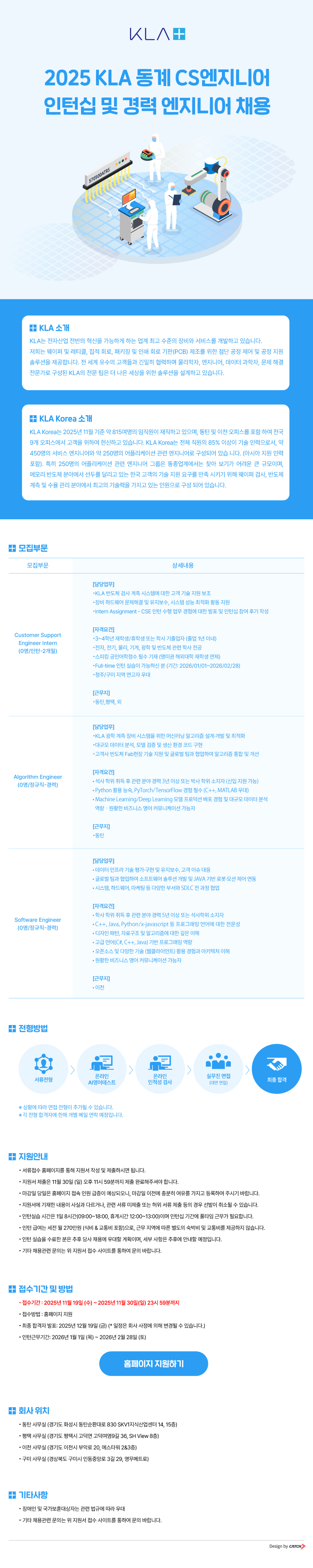 2025 KLA 동계 CS엔지니어 인턴십 및 경력 엔지니어 채용