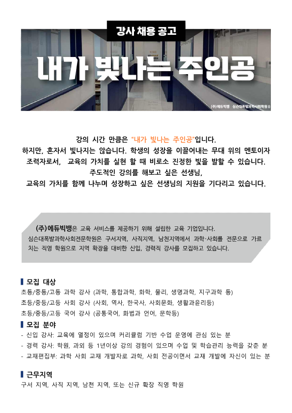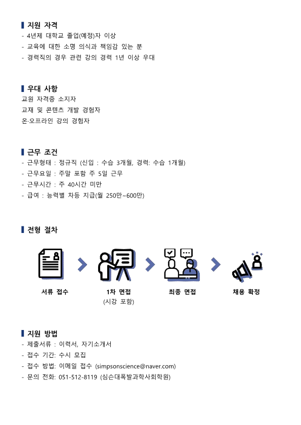 심슨대폭발학원 사업 확장에 따른 인재 채용