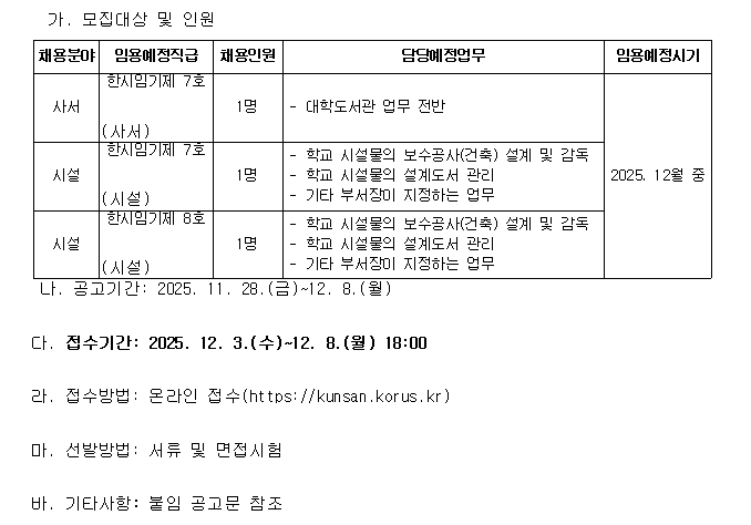 2025년도 제5회 국립군산대학교 한시임기제공무원 모집 재공고