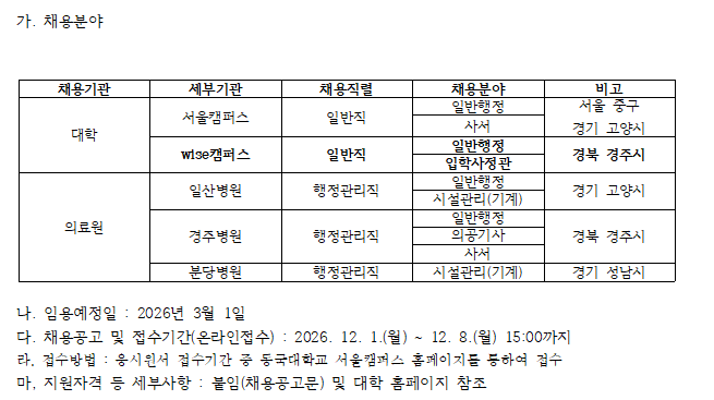 2026학년도 학교법인 동국대학교 신입직원 채용